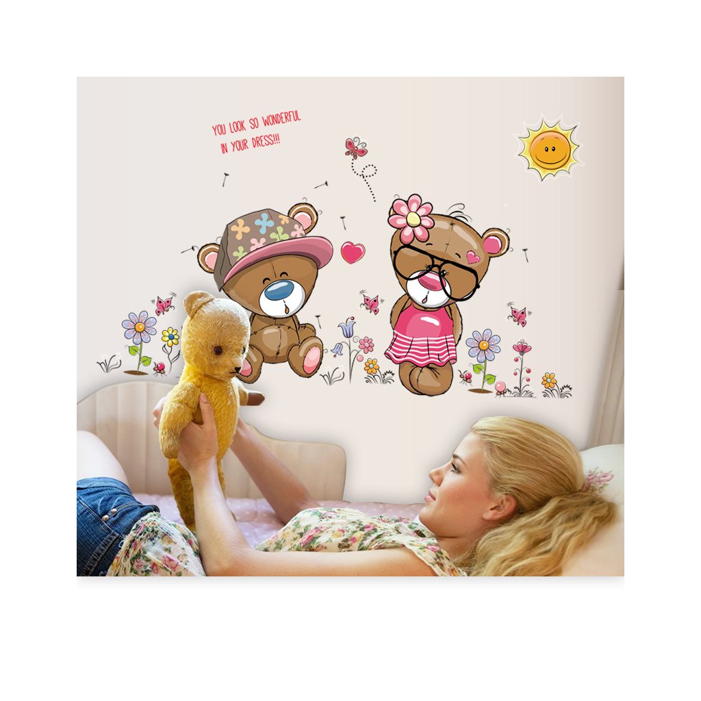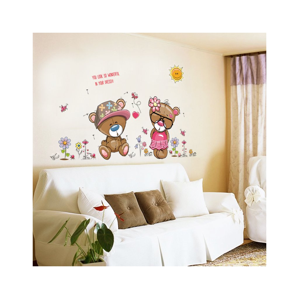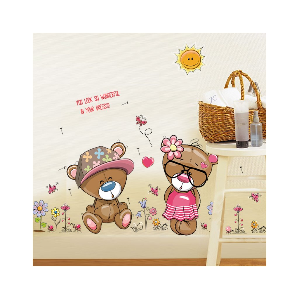 Tato roztomilá dětská samolepka na zeď Hraví medvídci rozveselí stěny pokojíčka vašich nejmilejších.