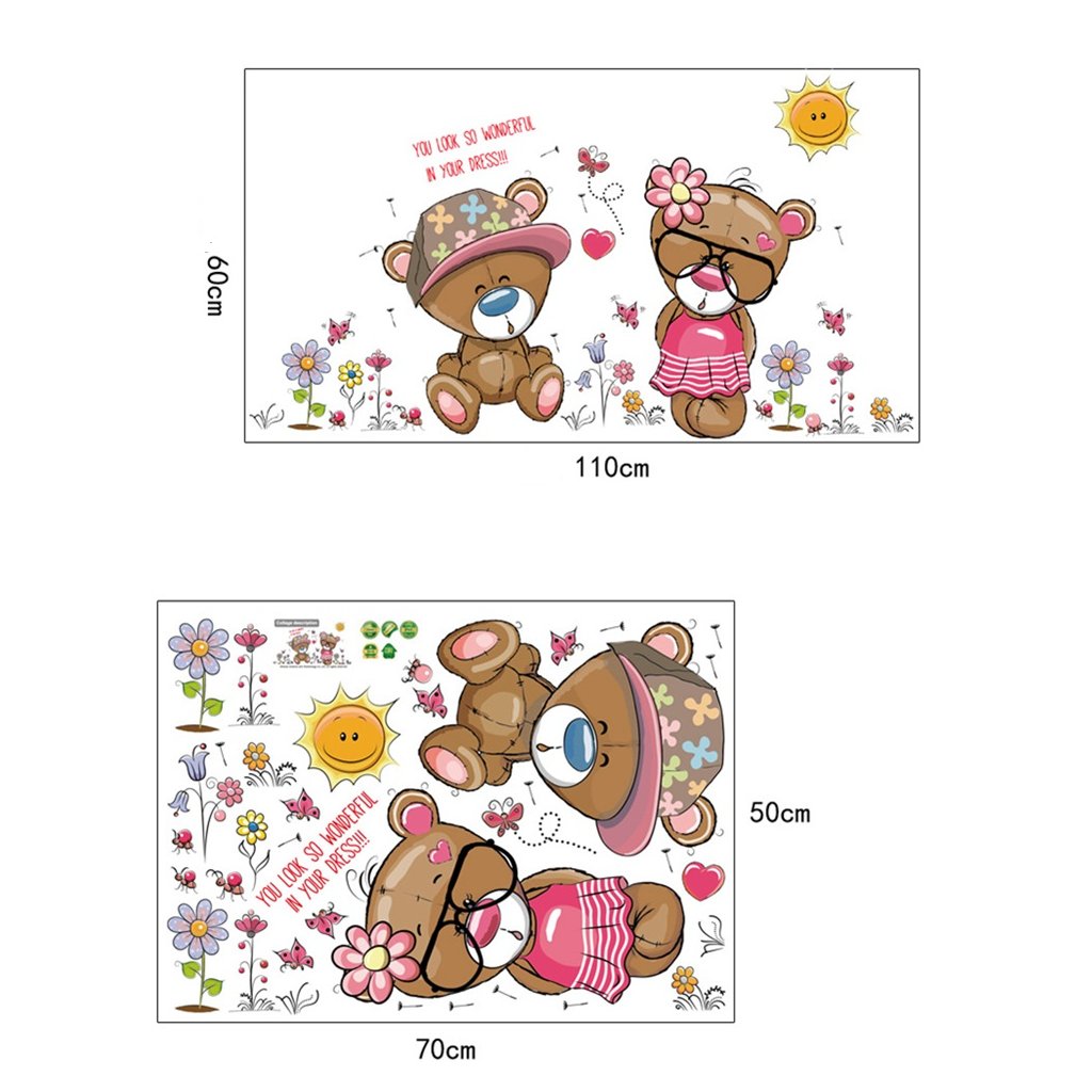 Medvídek je jedno z nejroztomilejších zvířátek. Tito medvídci na samolepící tapetě, obklopeni květinami, jsou stejně úžasní, jako ti vaši mrňousi.