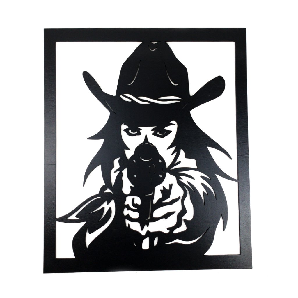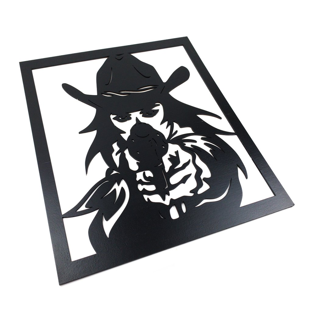 Tato originální bytová dřevěná dekorace Pistolnice černá není určena pouze pro fanoušky westernu. Skvěle se hodí třeba do obývacího pokoje, pracovny nebo na stěnu klučičího pokoje. S touto nebezpečnou kráskou se rázem octnete uprostřed divokého západu.