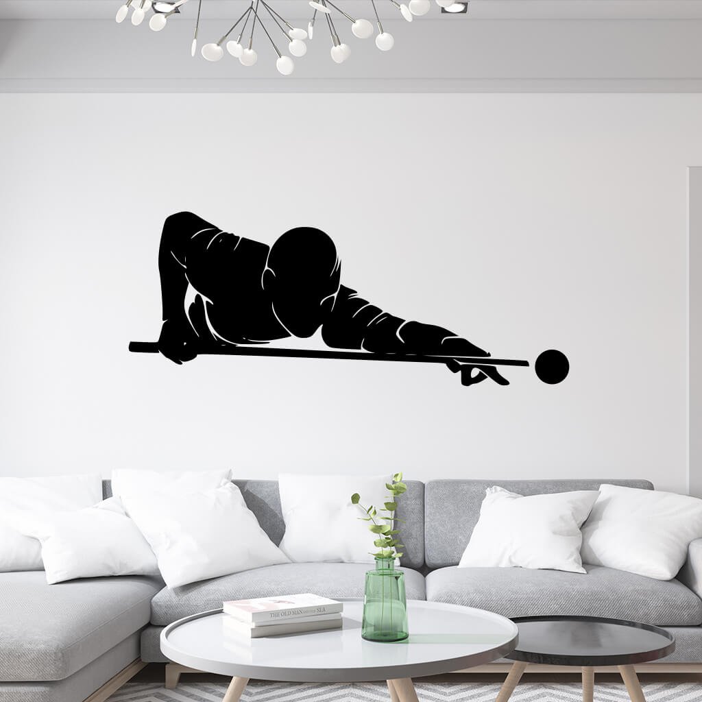 Tato originální samolepící dekorace na zeď Hráč kulečníku se bude krásně vyjímat například v obývacím pokoji, pracovně, ale bude se hodit i do barů a restaurací s kulečníkem. Projevte svou vášeň ke hře kulečníku a nechte rozzářit své zdi v domě s designem hráče kulečníku. Samolepka je vhodná pro nalepení na sklo či nábytek.