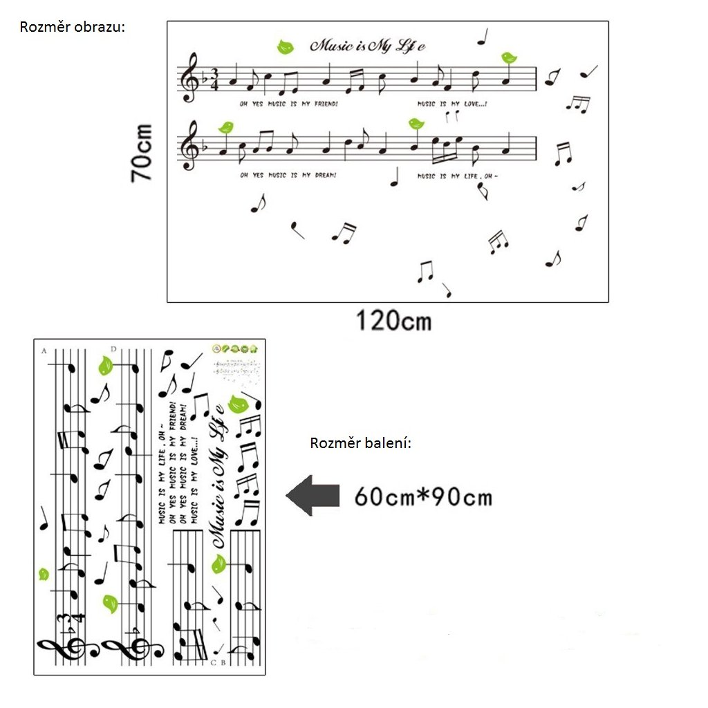 Efektní samolepka na zeď v moderně uměleckém stylu, znázorňující noty. Ozdobte vaši domácnost tímto originálním motivem, který osloví a potěší obzvláště milovníky hudby. Samolepky not si můžete rozvrhnout dle vaší kreativity. Je tak možno zakrýt i jakékoliv nedostatky na zdi.