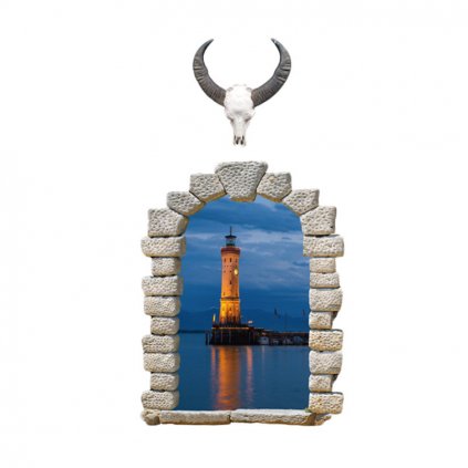 Nádherná 3D samolepka na zeď. Chcete-li do svého domova vnést trochu přímořské atmosféry s pohledem na plující plachetnici při západu Slunce, pak je tu samolepka Okno s výhledem na plachetnici právě pro vás. Trofej nad kamenným oknem už jen dokreslí historický dojem z celého obrazu.